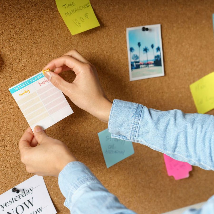 6. Stelle das Vision Board an einem Ort auf, an dem du es regelmäßig sehen kannst. Es dient als visuelle Erinnerung an deine Ziele und kann dich motivieren, darauf hinzuarbeiten.
